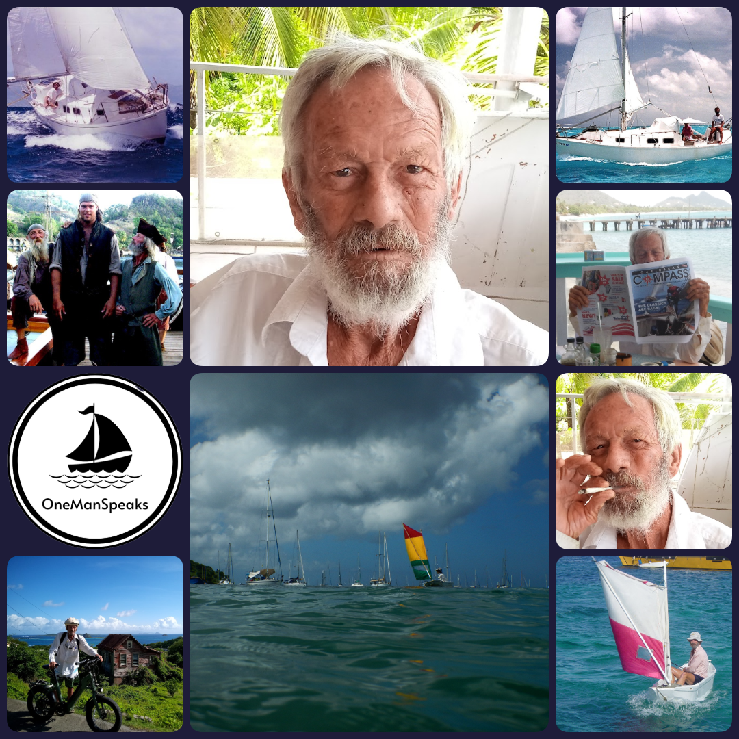 Hutch passed away on 24 January 2025 aged 81 after a long and interesting life. He had mainly achieved his life’s ambitions. He was a light aircraft instructor (after his stint in the US Navy) in Boulder, Colorado from 1964 – 1984. Then aged 42 after selling his other belongings, he embarked on a life of sailing and writing. After a few experimental sails he bought AMBIA (a 24ft Bristol Corsair Sloop.) He sailed and lived aboard AMBIA for 37 years (you can read his sailing adventures on this site.) Then he moved ashore in Carriacou, part of the Tri-Island state of Grenada, Carriacou & Petite Martinique. He continued to have adventures and at the age of 78, he purchased an ebike and rode around the island.